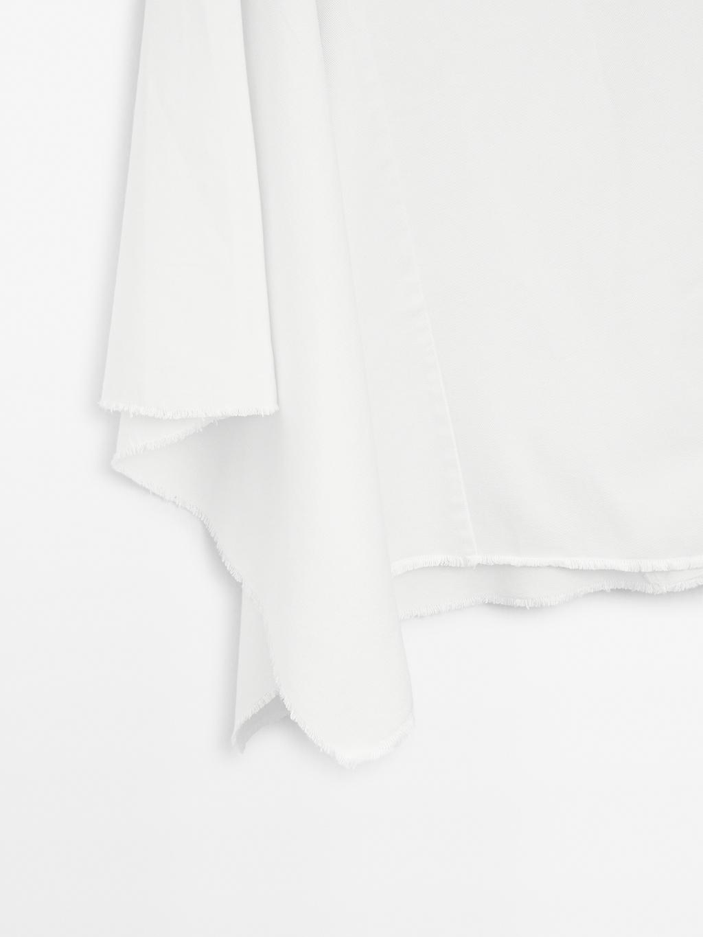 Denim midi skirt made of 100% cotton fabric with stitching detail . Asymmetric cut. Zip fastening at the back. Frayed hem. Seam details .