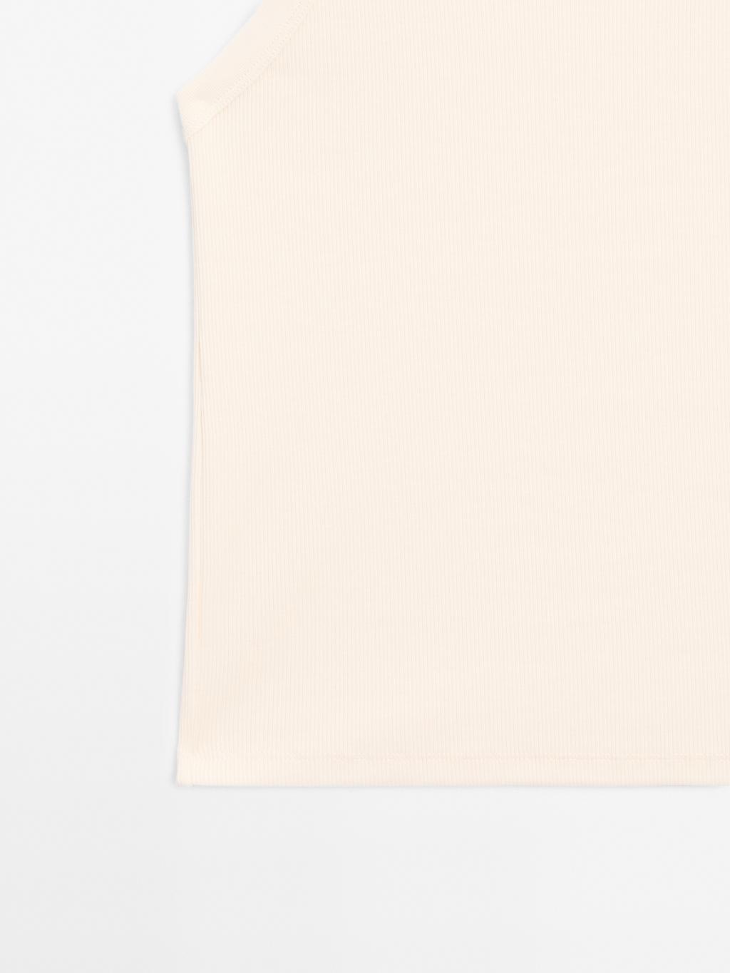 Top made of cotton blend fabric . Round neck. Sleeveless. Ribbed trims .