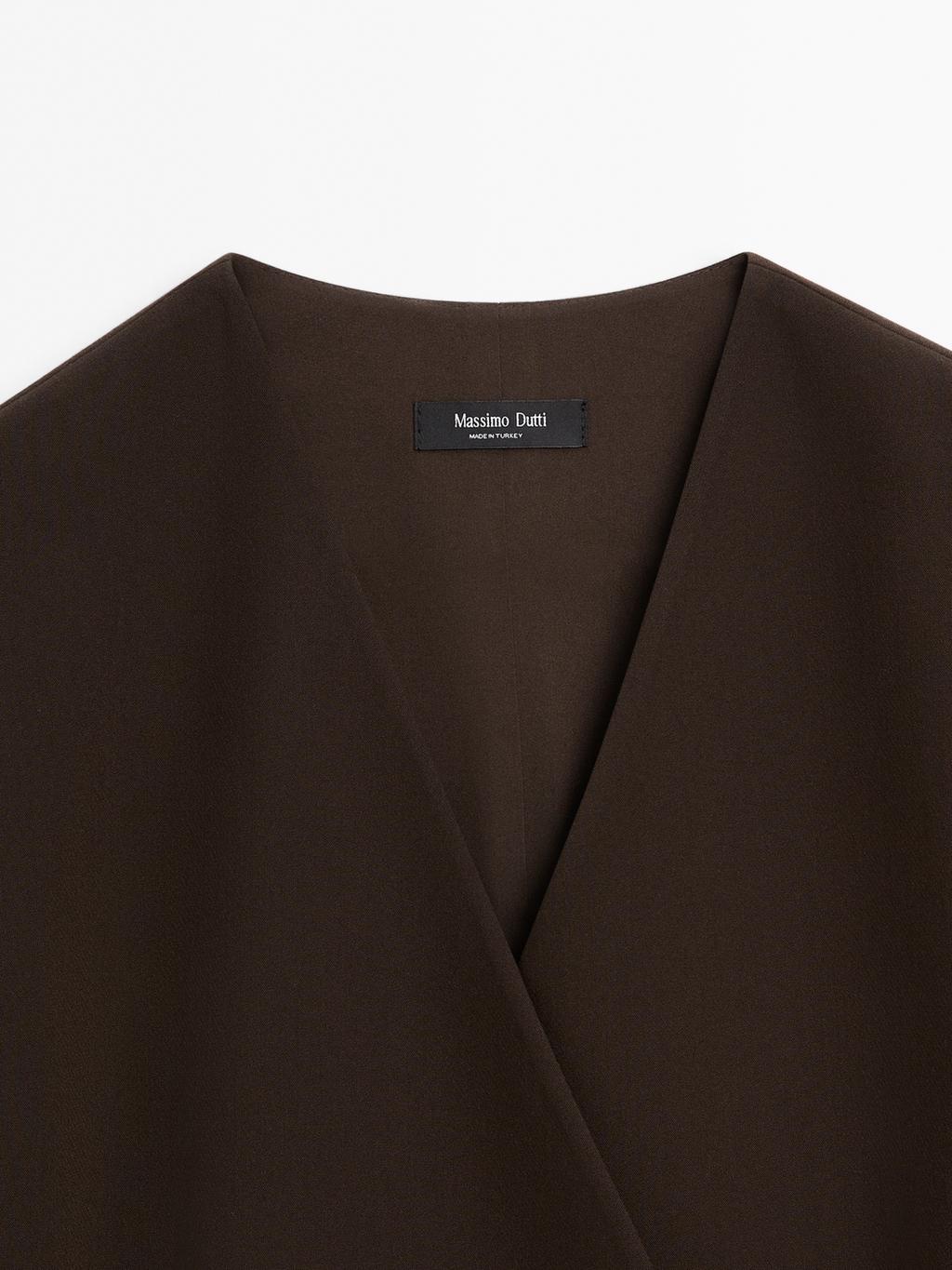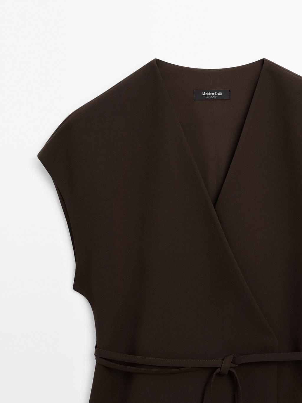 Double-breasted kimono with lacing and concealed button fastening. V-neck . Sleeveless. Lined. Drop-shoulder detail. Matching garment available.