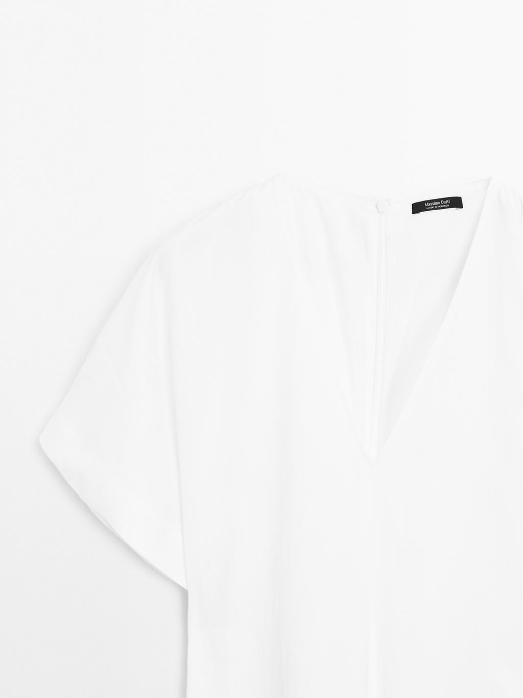 Flowing V-neck midi dress. Short batwing sleeve. Zip fastening at the back.