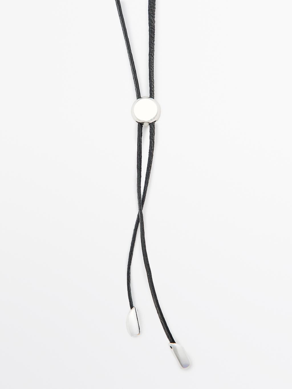 Leather cord necklace with stone. Drawstring closure. Each stone has its own unique variations in colour and veining.