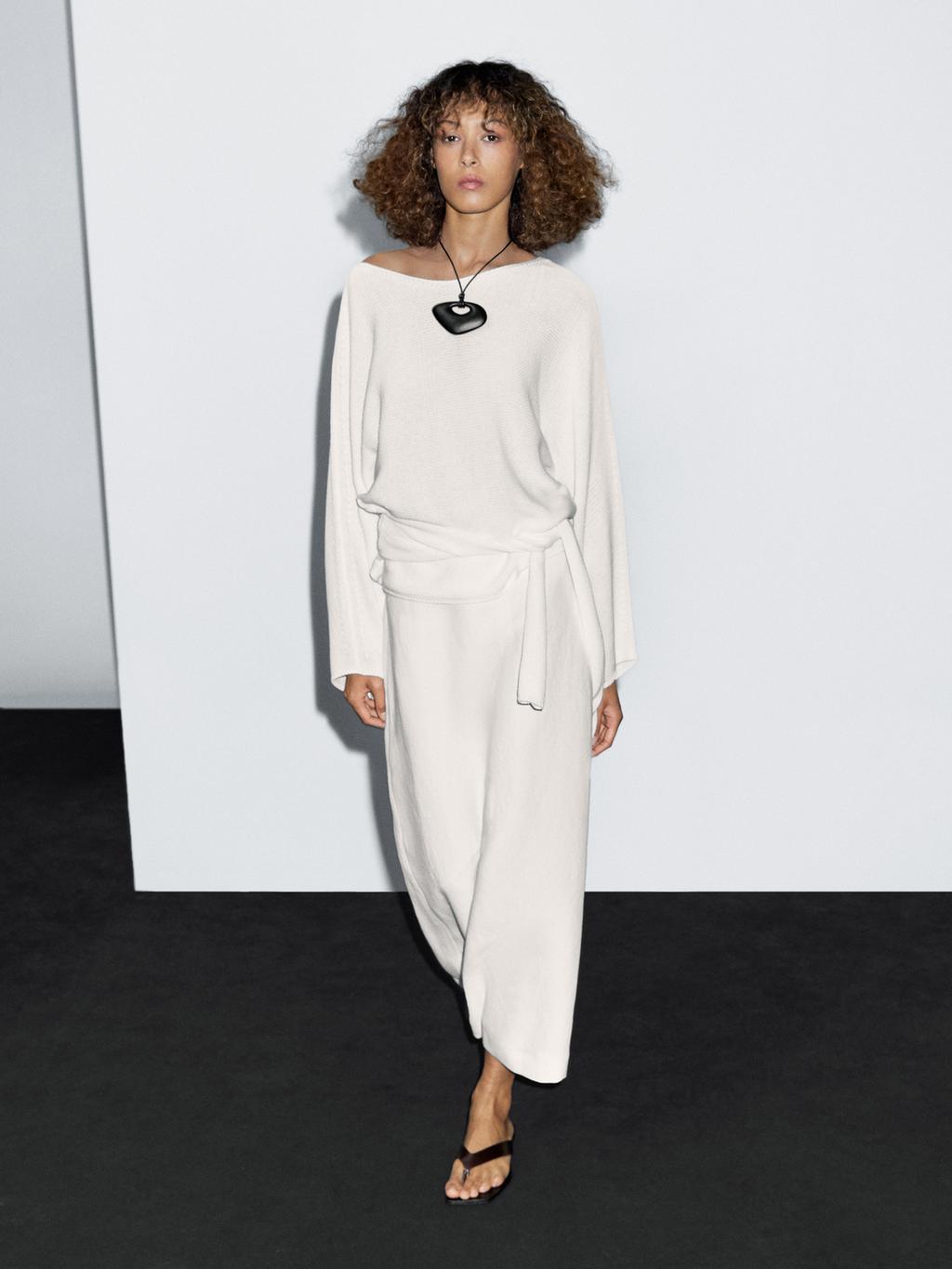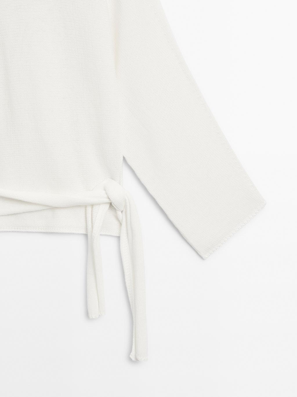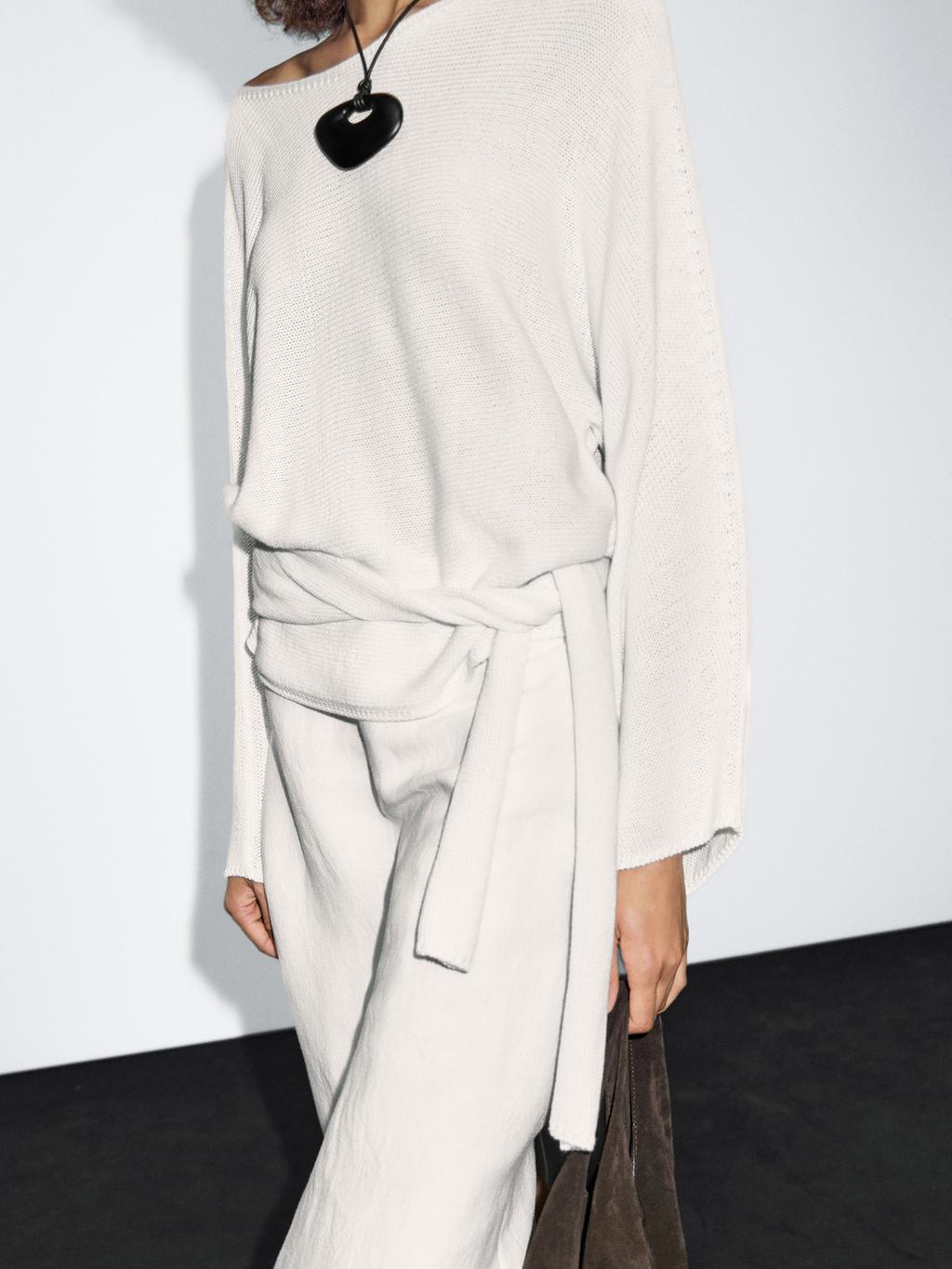 Knit jumper made of 100% cotton fabric . Crew neck. Batwing sleeves. Includes belt. Wide and relaxed silhouette, not tailored.
