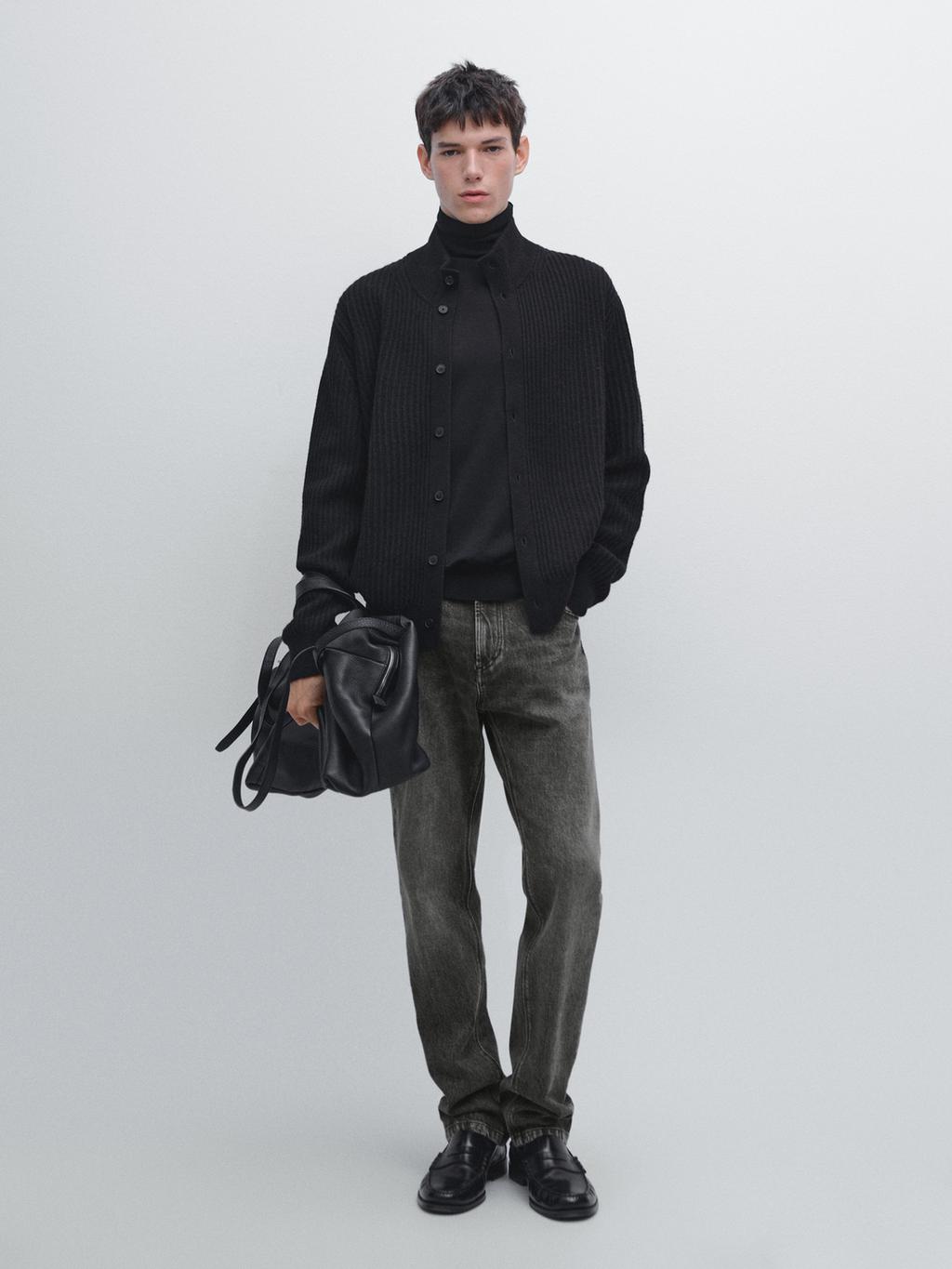 Knit wool blend cardigan with high neck