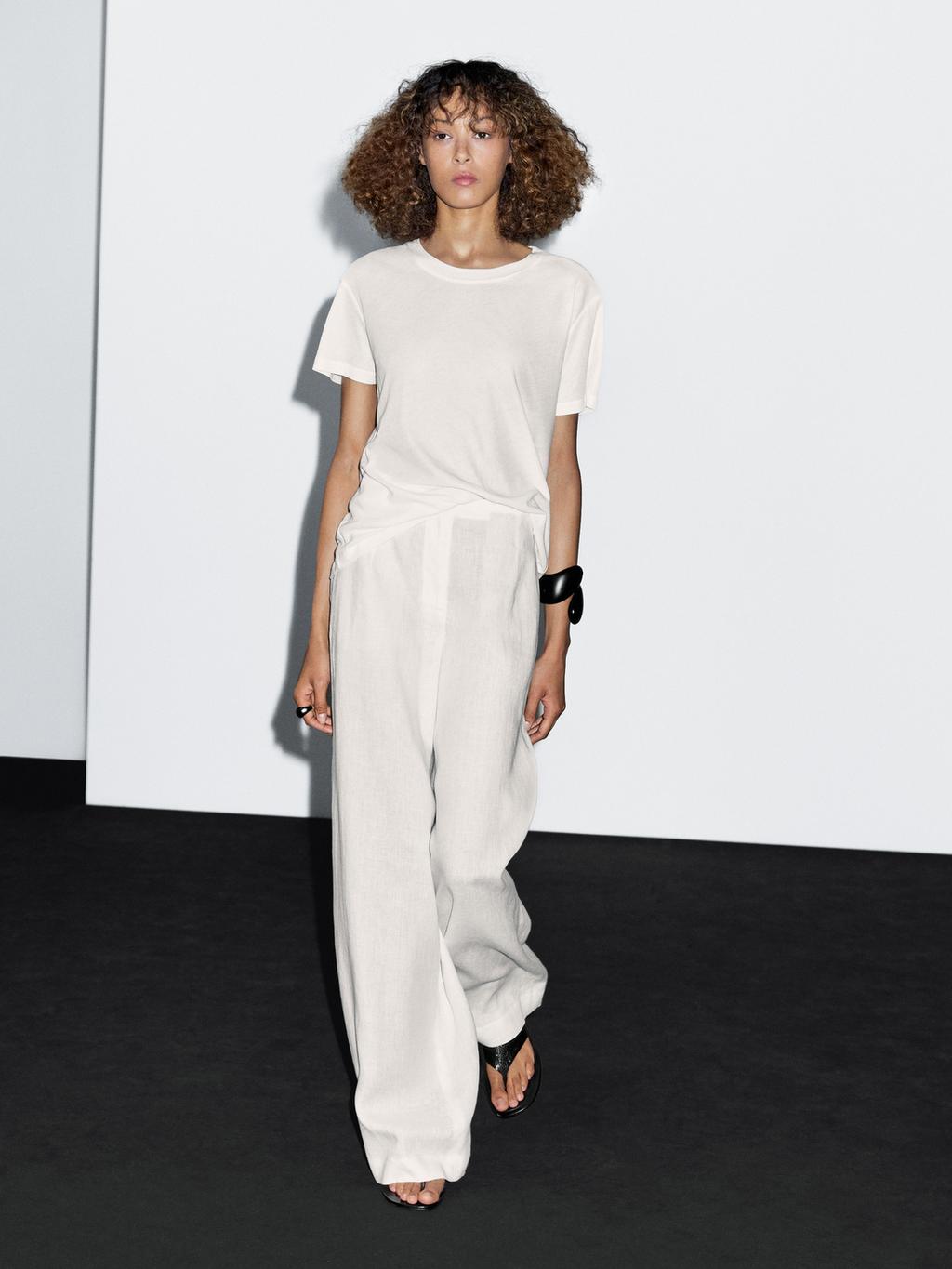 Short sleeve T-shirt. Crew neck. Lightweight, soft and soft marbled effect fabric with an irregular texture . Made of 100% cotton fabric.