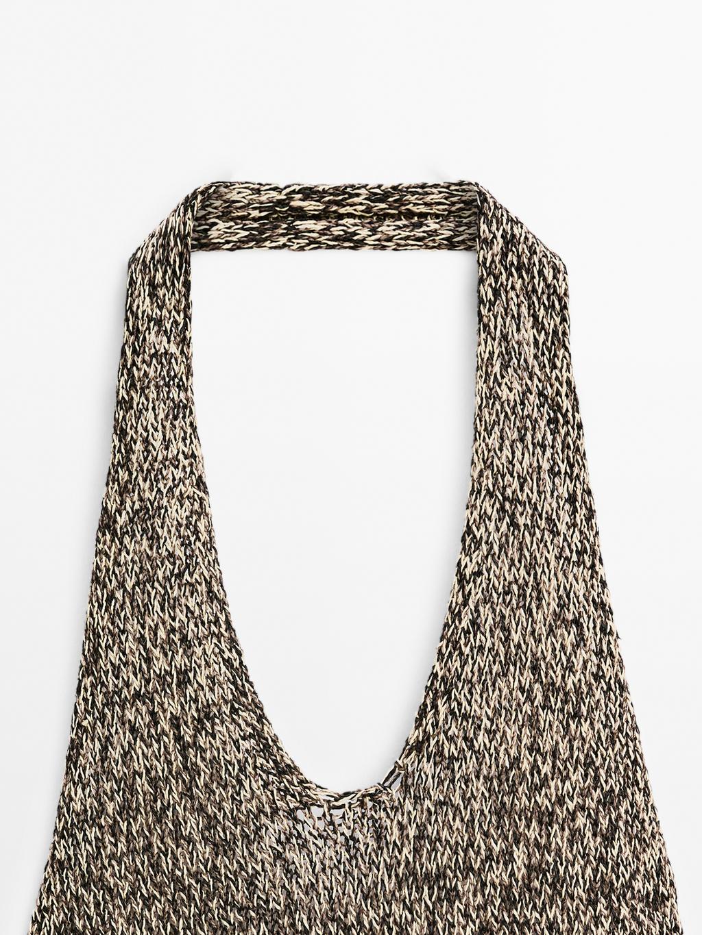 Long dress with halter neck . V-neckline at the back and neck . Gathered detail. Made of cotton blend fabric.