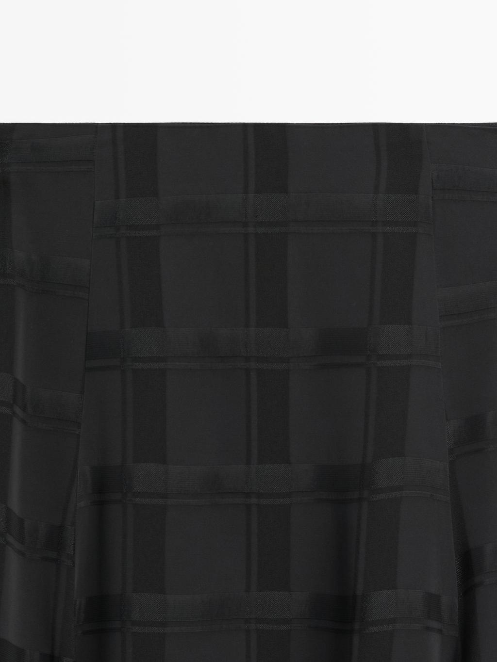 Long flared skirt. Side zip fastening. Check print. Lined. By selecting the colour ¡®Navy Blue', you are choosing the black model shown in the photos.