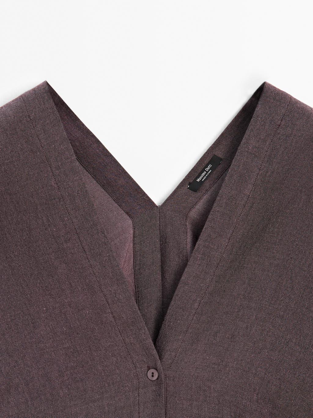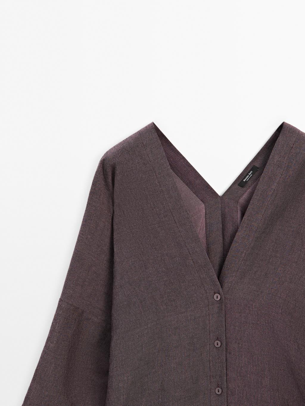 Tunic dress with stitching detail. V-neck . Wide long sleeve. Button-up front.
