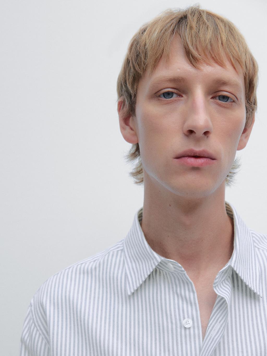 Regular fit: This fit offers comfort with a bit more room in the torso and arms, providing a classic, yet relaxed style. Long sleeves with buttoned cuffs. Shirt collar. Button-up front. Striped detail. Peach-feel fabric .