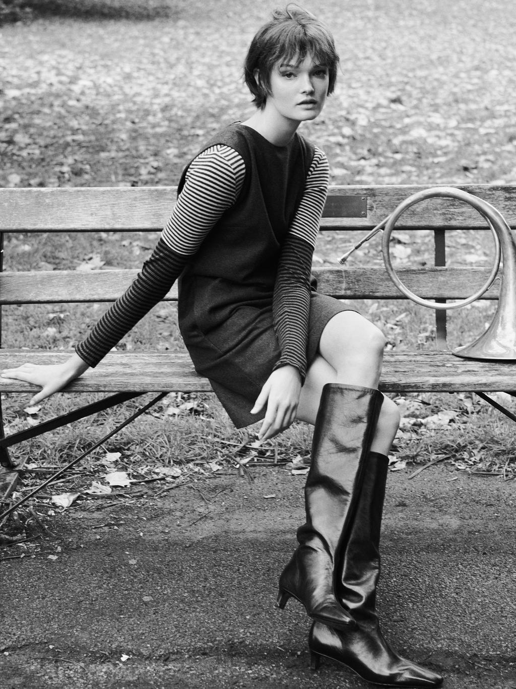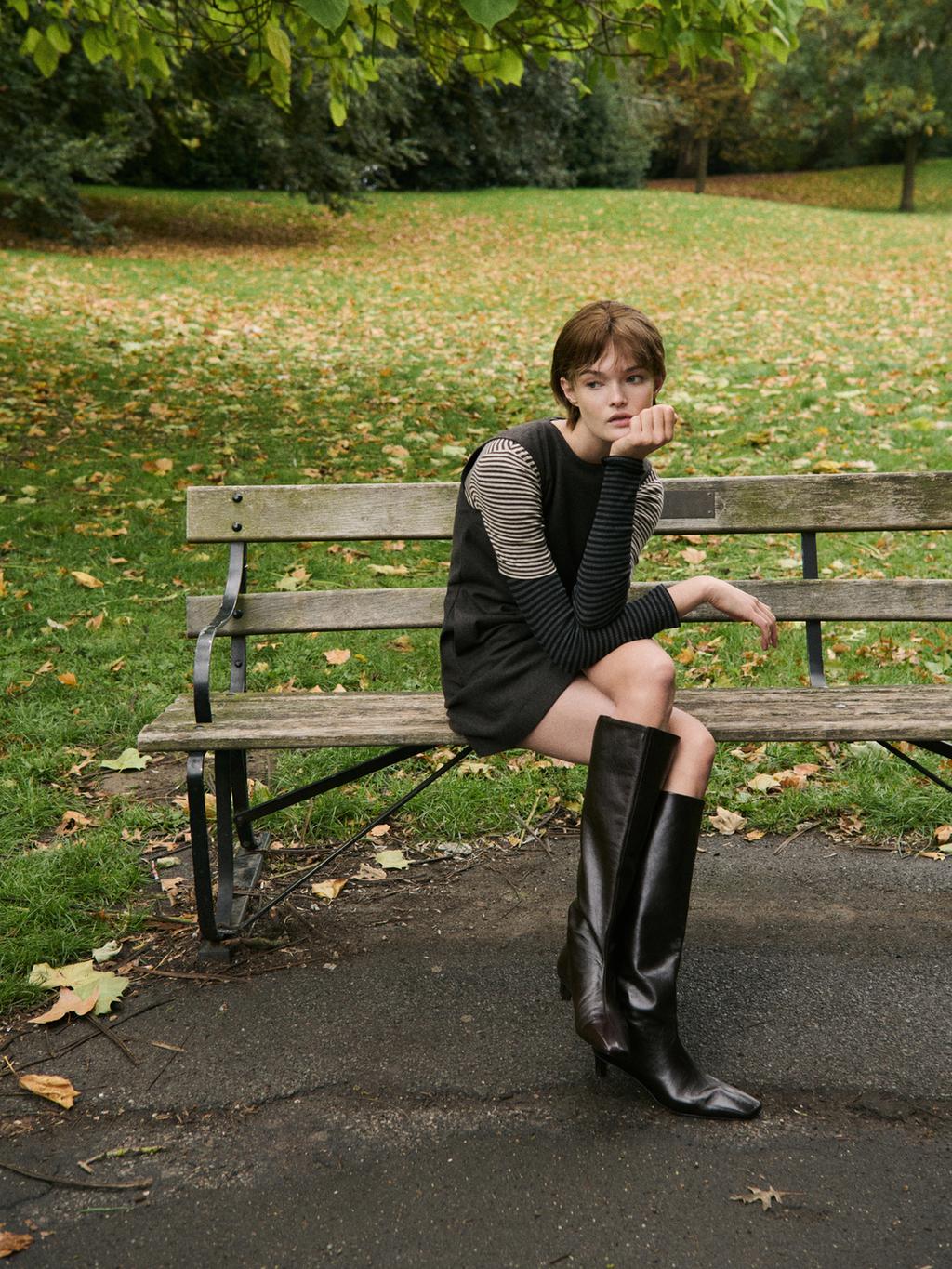 Knit T-shirt made from cotton blend fabric. Crew neck. Short sleeves. Striped detail.