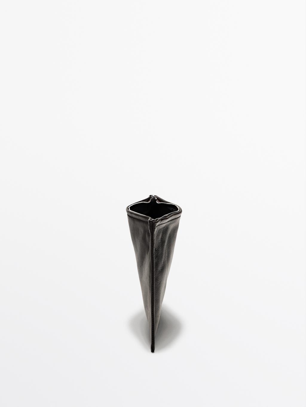 Bag made of sheepskin with a nappa finish. Charm keyring with knotted detail made of sheepskin with nappa leather finish. Zip fastening. Cotton lining.