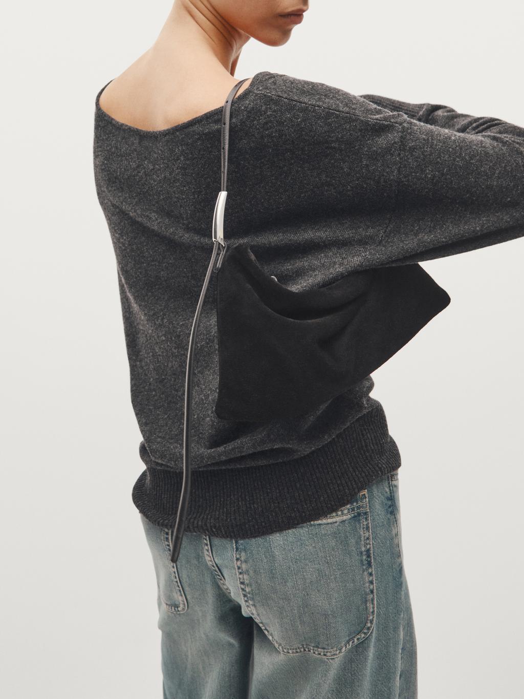Handbag made of cowhide with a split leather finish. A handle/shoulder strap. Zip fastening. An inside pocket.