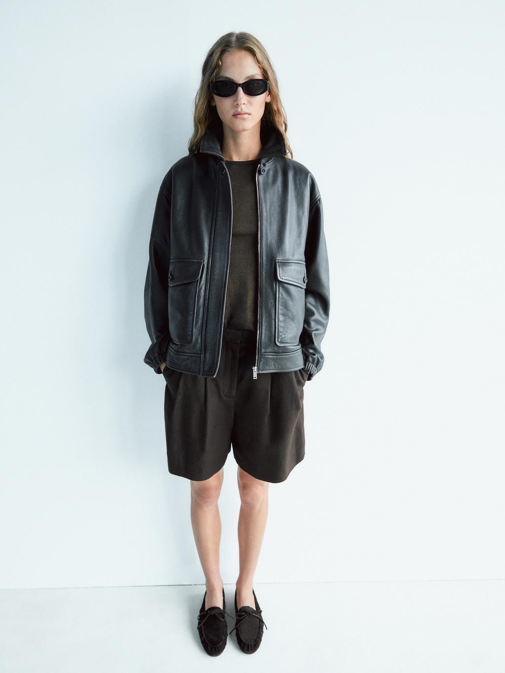 Split leather loafers with gathered bow