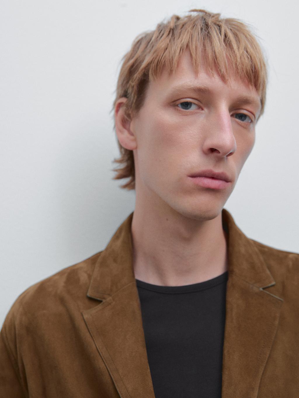 Blazer made of goatskin leather with suede finish. Lapel collar. Long sleeves. Three-button fastening. patch pockets. Lightweight and unlined body. Polished edges: polished finish for a sophisticated touch.