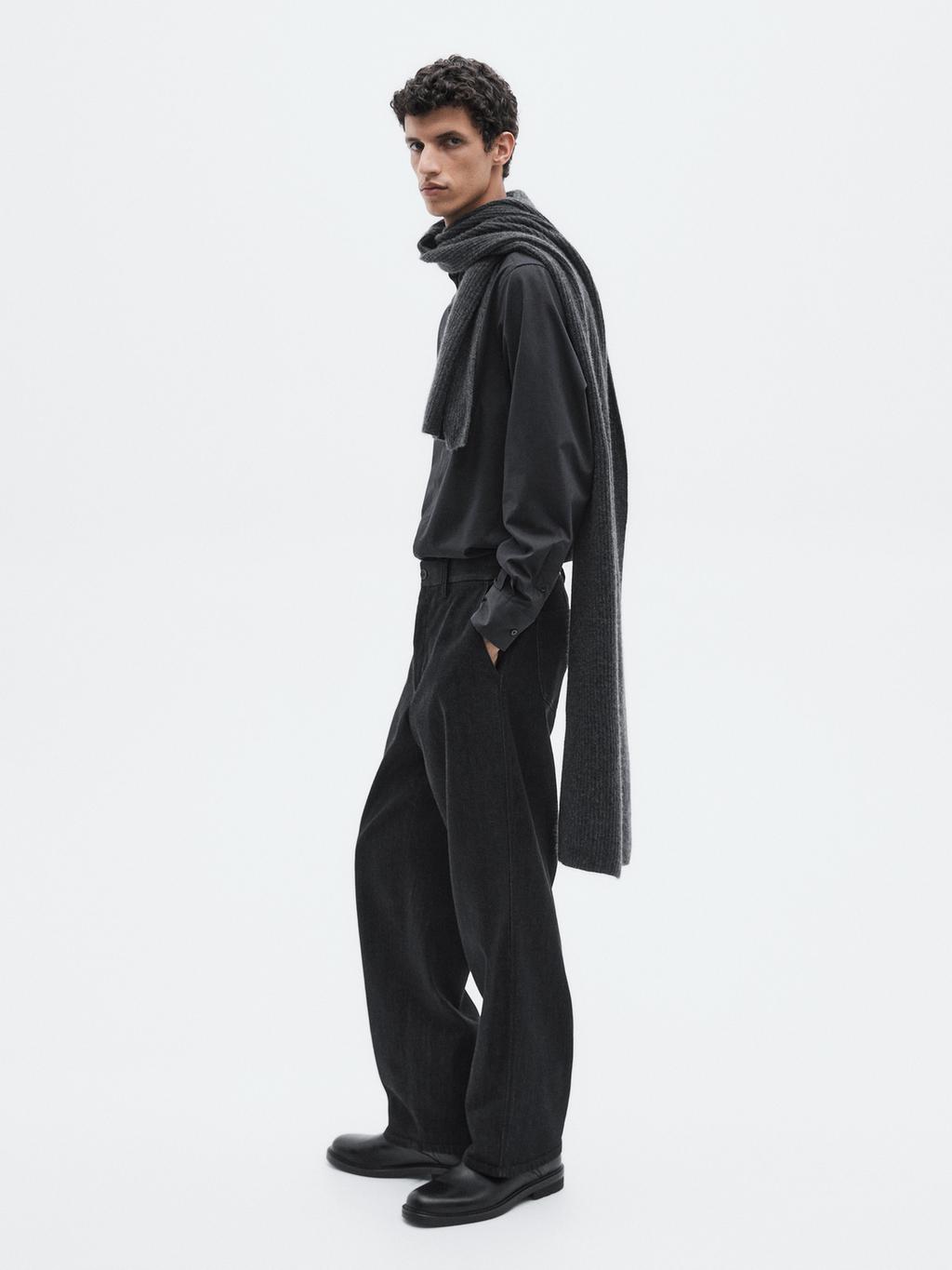 Wide leg jeans: this fit has a wide and loose cut from hip to ankle, offering comfort. Concealed zip fastening with flap, button and inside button. Two side pockets. Two patch pockets on the back.