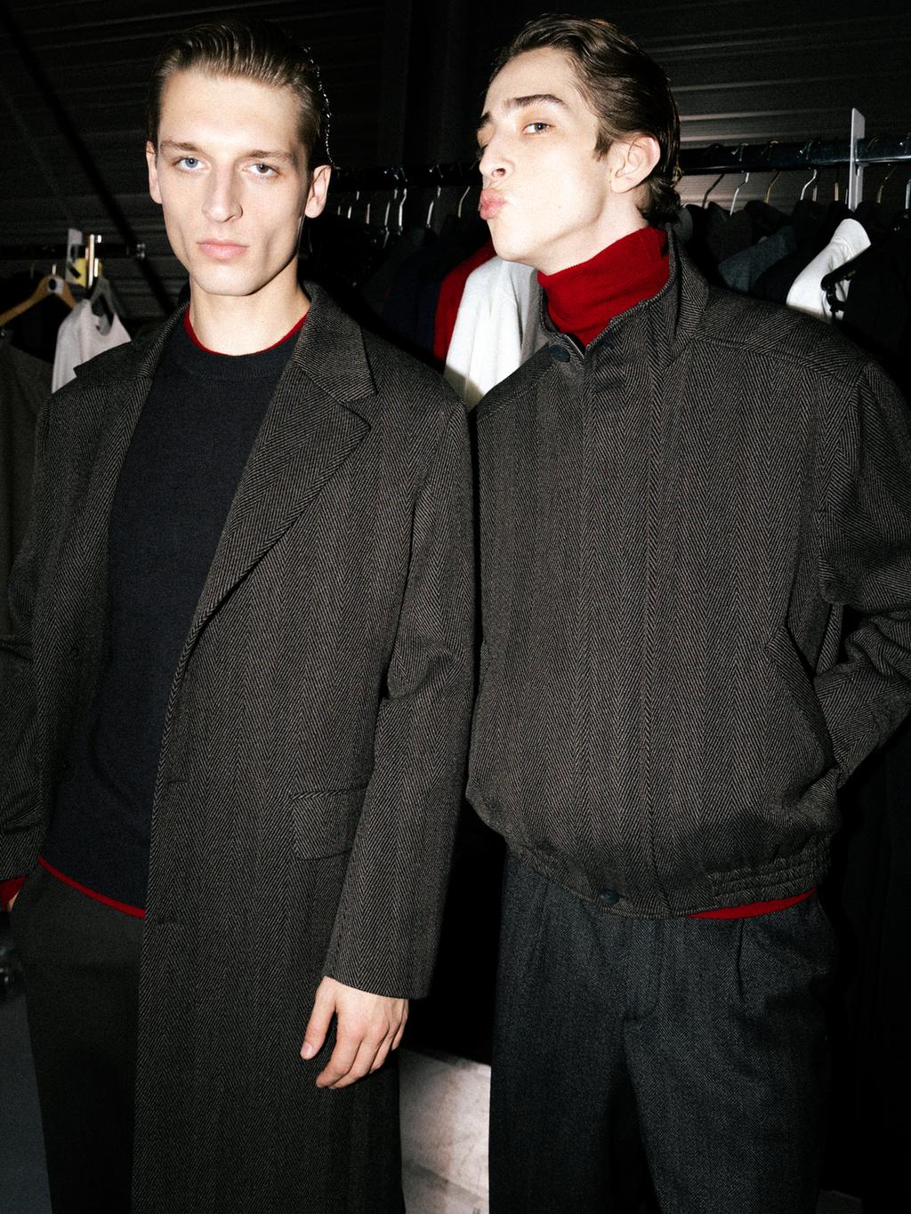 Bomber jacket made of a wool blend. Long sleeves with buttoned cuffs. Concealed zip closure with buttoned placket. Buttoned-up high neck. Inside pockets. Elastic band detail at the hem area. Lined. Herringbone fabric.